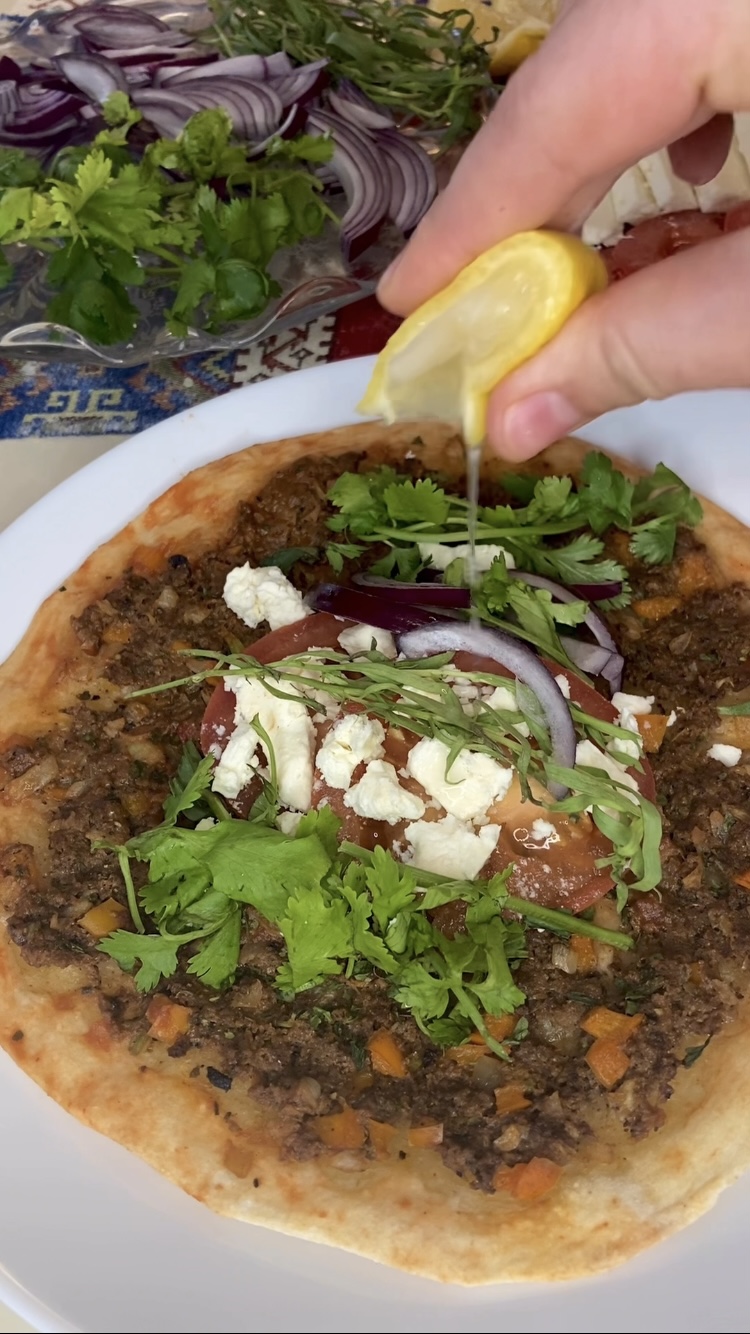 Lahmajun, commonly known as Armenian pizza, is a delicious flatbread topped with a thin layer of meat that’s been flavored with onions, garlic, tomatoes, peppers, and lots of herbs and spices. It’s one of my favorite Armenian dishes and is bound to be one of yours too.