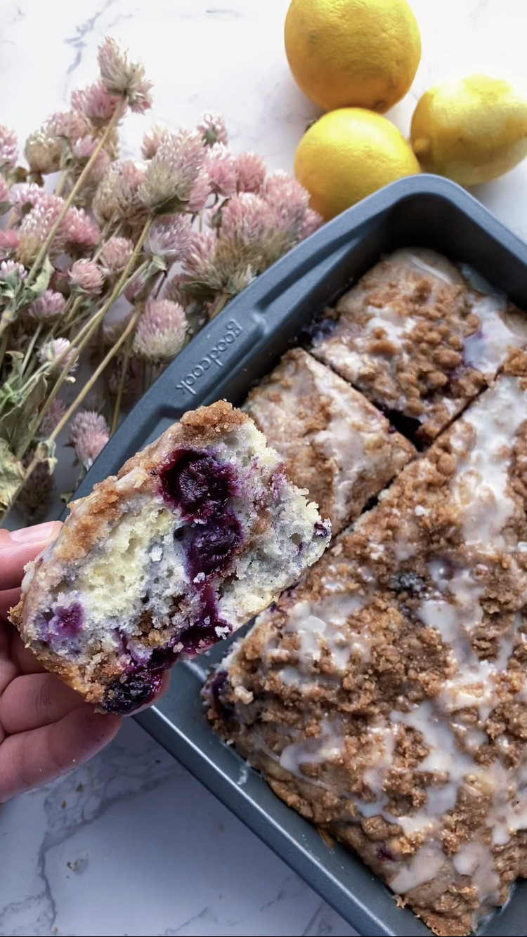 I am once again back with a blueberry dessert, because yes, the rumors are true, I love lemon/blueberry flavor combinations in any form. This time it’s with a lemon blueberry coffee cake, which is so delicious. It features a moist and light cake, a brown sugar cinnamon streusel, and tart blueberries throughout. I also use brown butter which I think works well with the cinnamon, but you can definitely just use melted butter if you don’t want the additional step. Either way, it will be amazing! Recipe below: